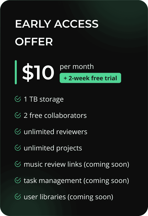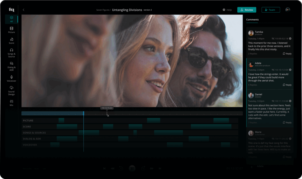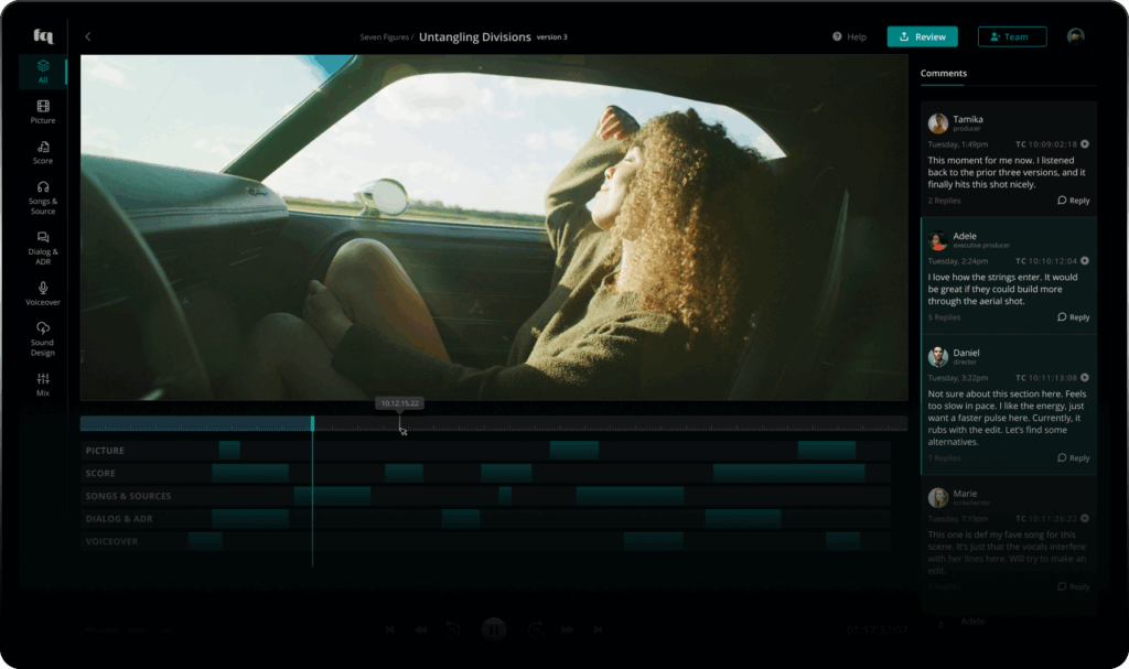 Imagination. Without speed limits.Review your video edit with song options, score versions and post audio. Freque disolves the the pain points to creative decisions so you can focus on making a great film.