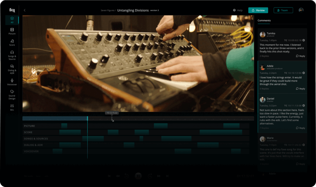 Freque combines video, music and sound for synchronized review. Connecting content, teams and imagination.