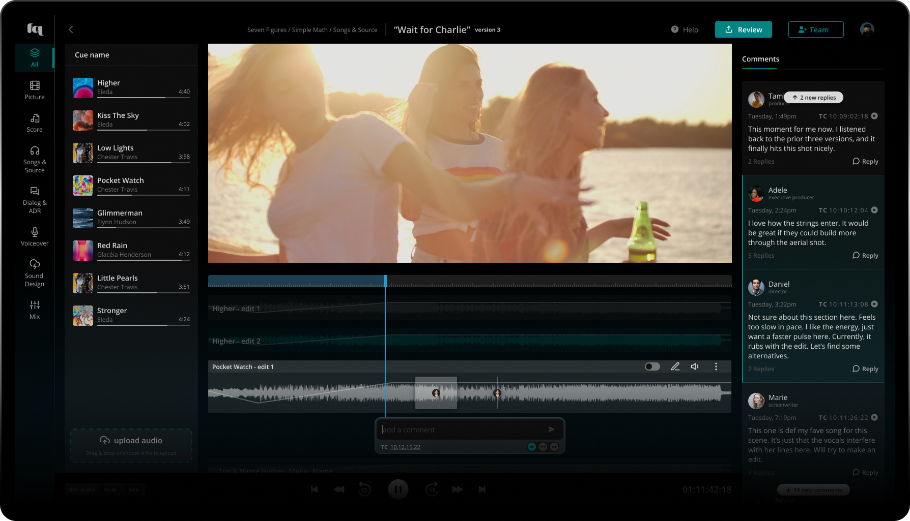 Finally a collaboration platform fundmentally built for reviewing music to picture. Faster feedback and approval so you can stay creative and focus on your soundtrack.