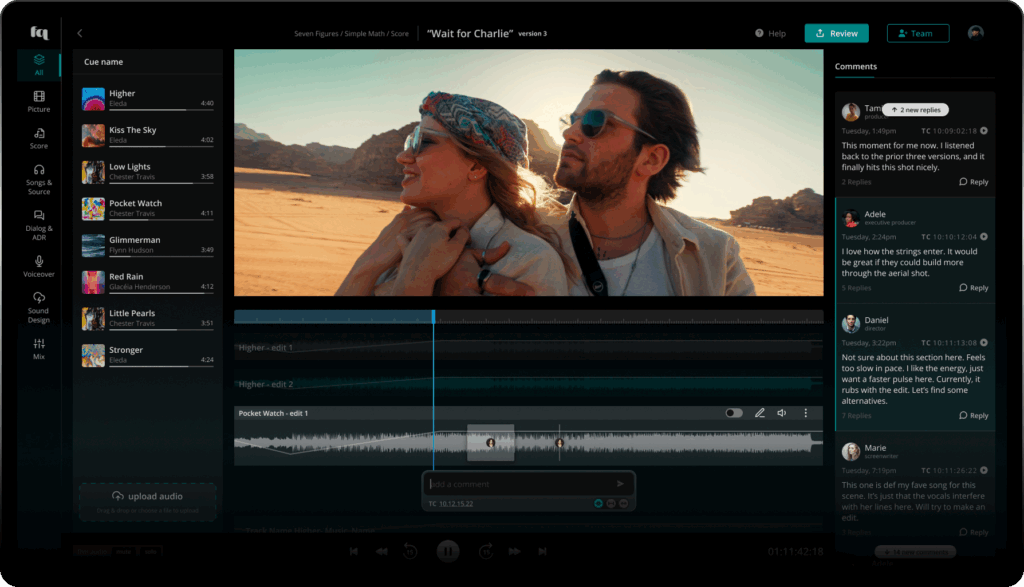 When creating a comment, or anytime before you send it, you can adjust its position by typing in the timecode field. When you create a ranged comment, you can also edit the out-point timecode. Click the green arrow-button next to the timecode once you have edited it to set it.